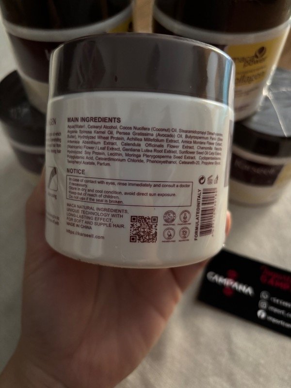 Contiene: colágeno, maca, aceite de argán, aceite de coco, aceite de aguacate, manteca de karité, proteínas de trigo y soya, extractos botánicos y vitamina E.