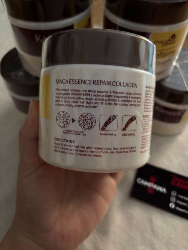 La mascarilla Karseell Maca Collagen es un tratamiento profesional que reconstruye la fibra capilar desde el interior gracias a su fórmula con: